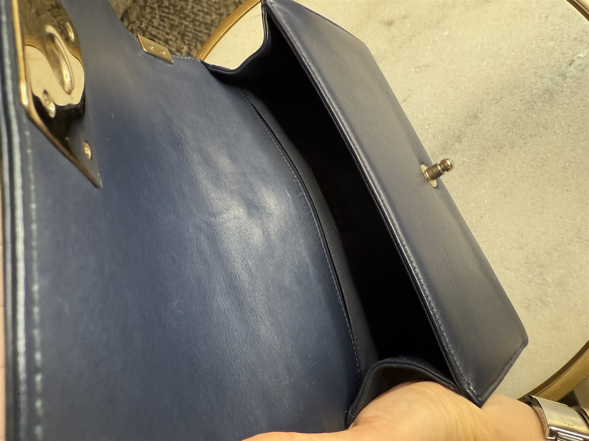 Tracolla a catena e pelle regolabile. Interno in tessuto.