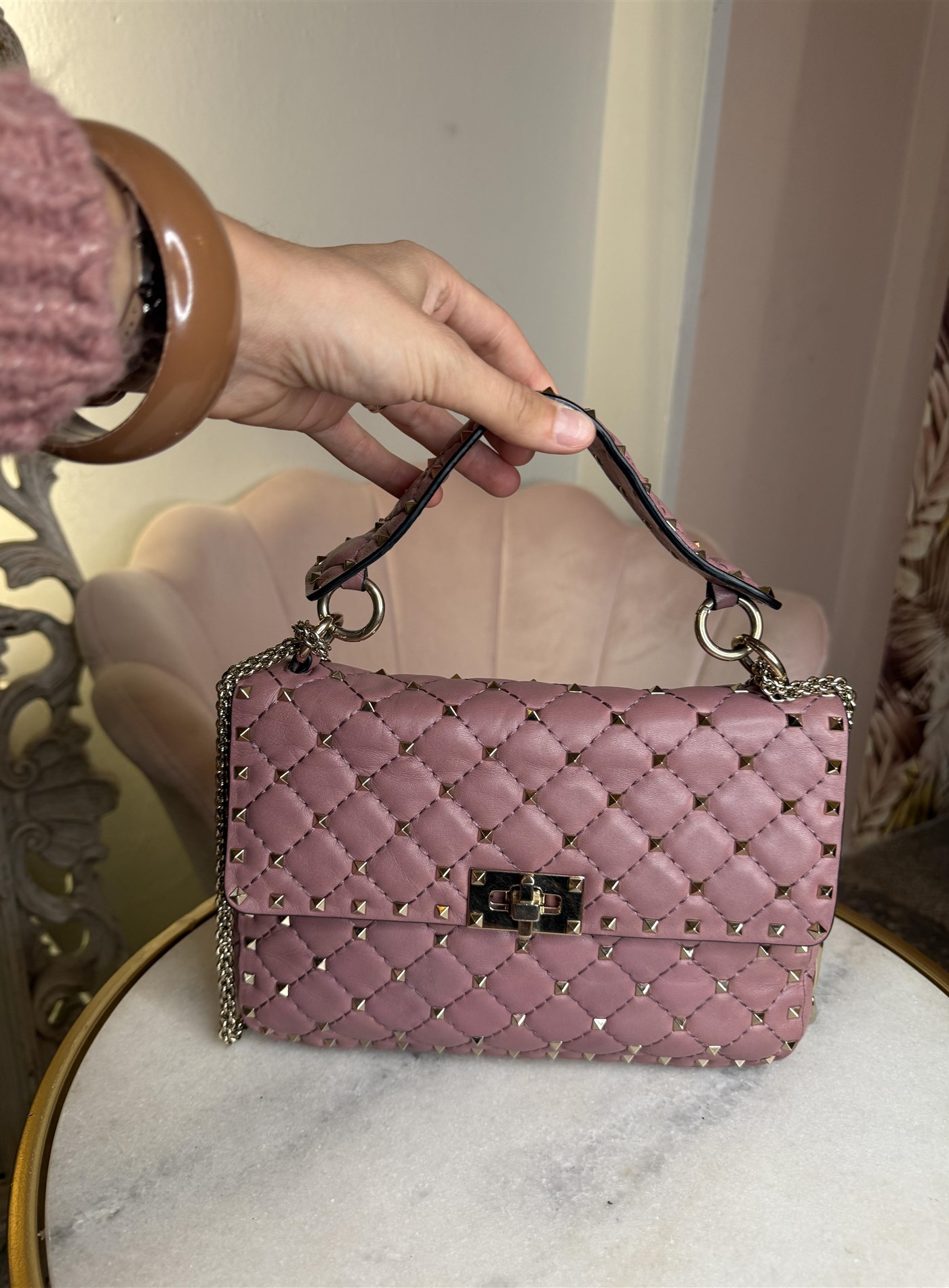 Descrizione: Valentino Rockstud Spike misura media, color malva con hardware gold.